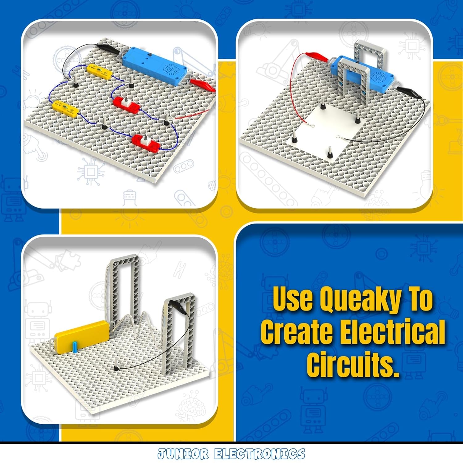 Dive into the world of "Junior Electronics" – where budding scientists in 1st, 2nd, and 3rd grade uncover the mysteries of electricity and electronics through hands-on projects! Say hello to Queaky, the buzzing sensation that sparks excitement as kids connect its terminals to create sounds. With Queaky and an array of components like wires, clay, and resistors, young learners delve into the concepts of insulators, conductors, and the intriguing world of series and parallel connections. From unraveling resistance analogies to exploring the importance of earthing and distinguishing between open and closed circuits, every project is a spark of discovery!