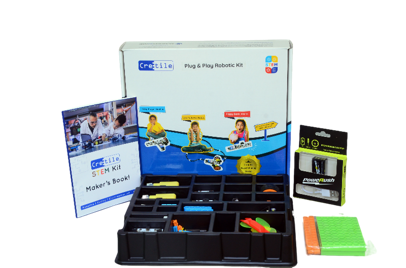 - Concepts: Plug-n-play blocks for students to easily learn Robotics , electronics & science concepts